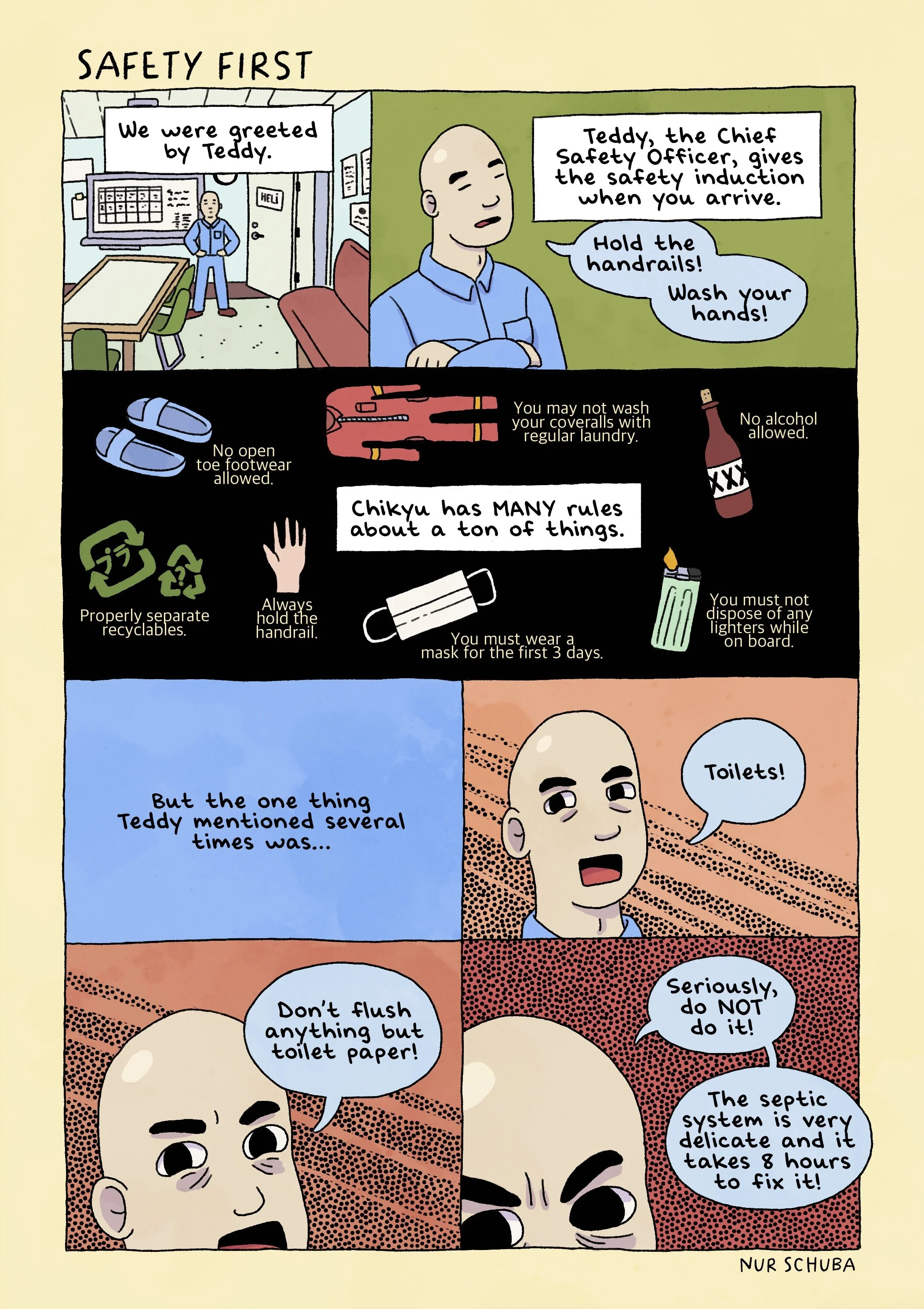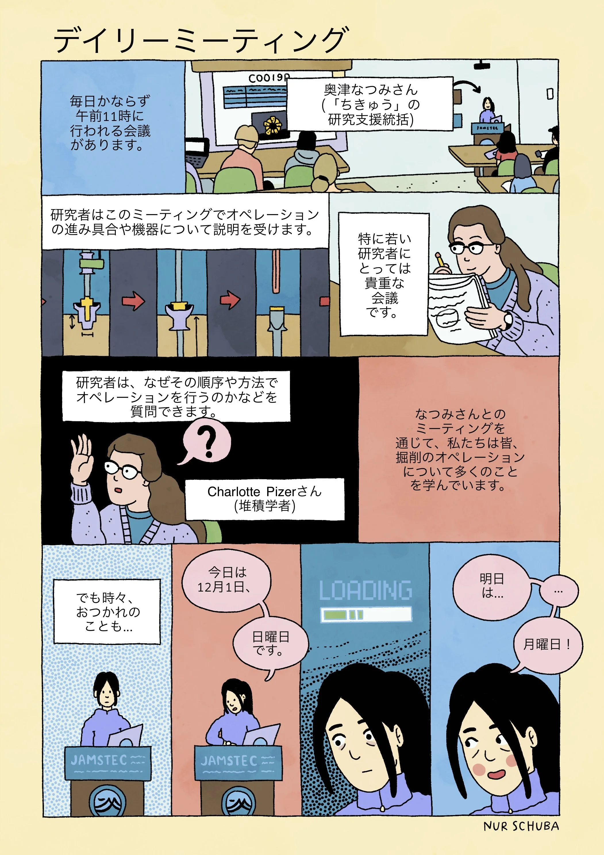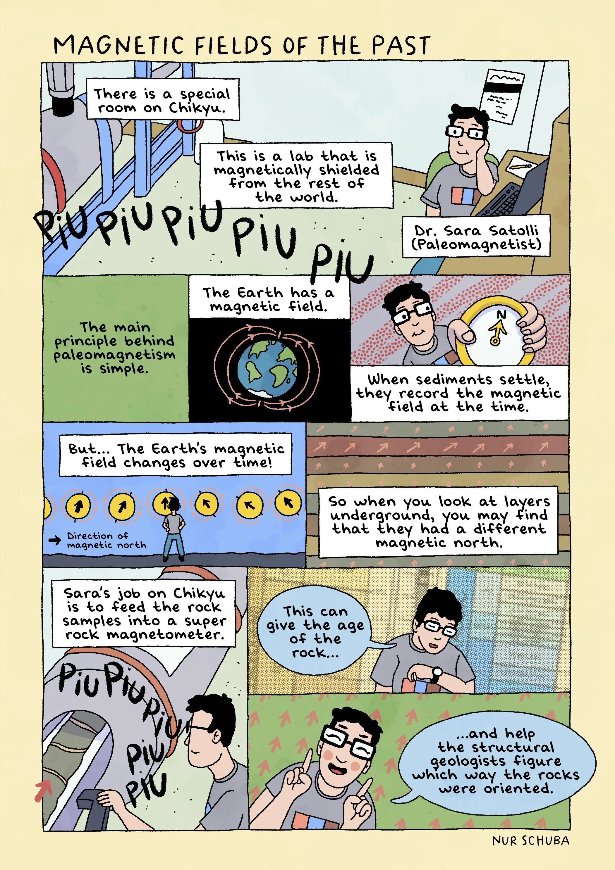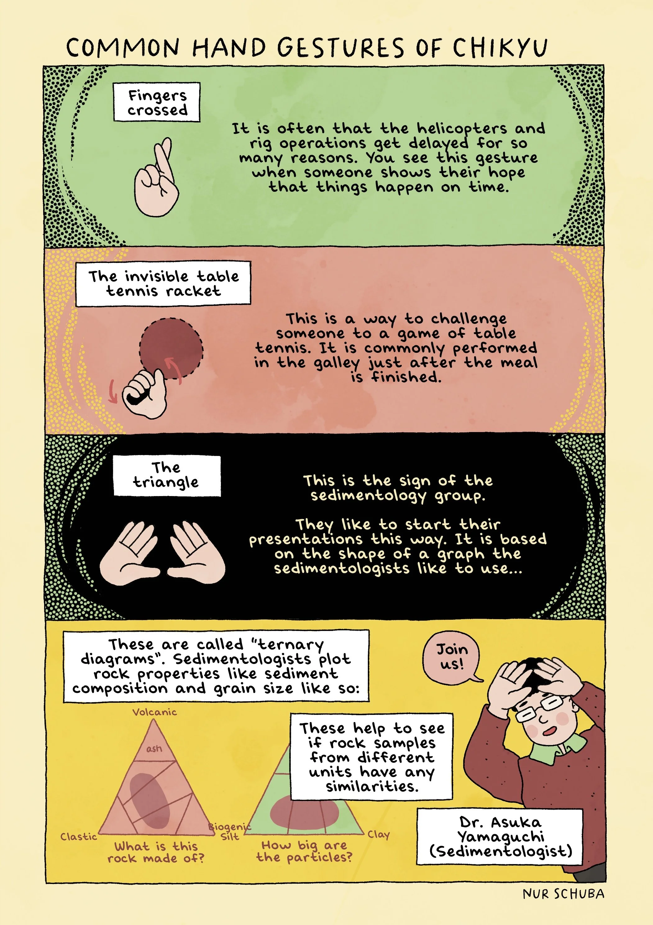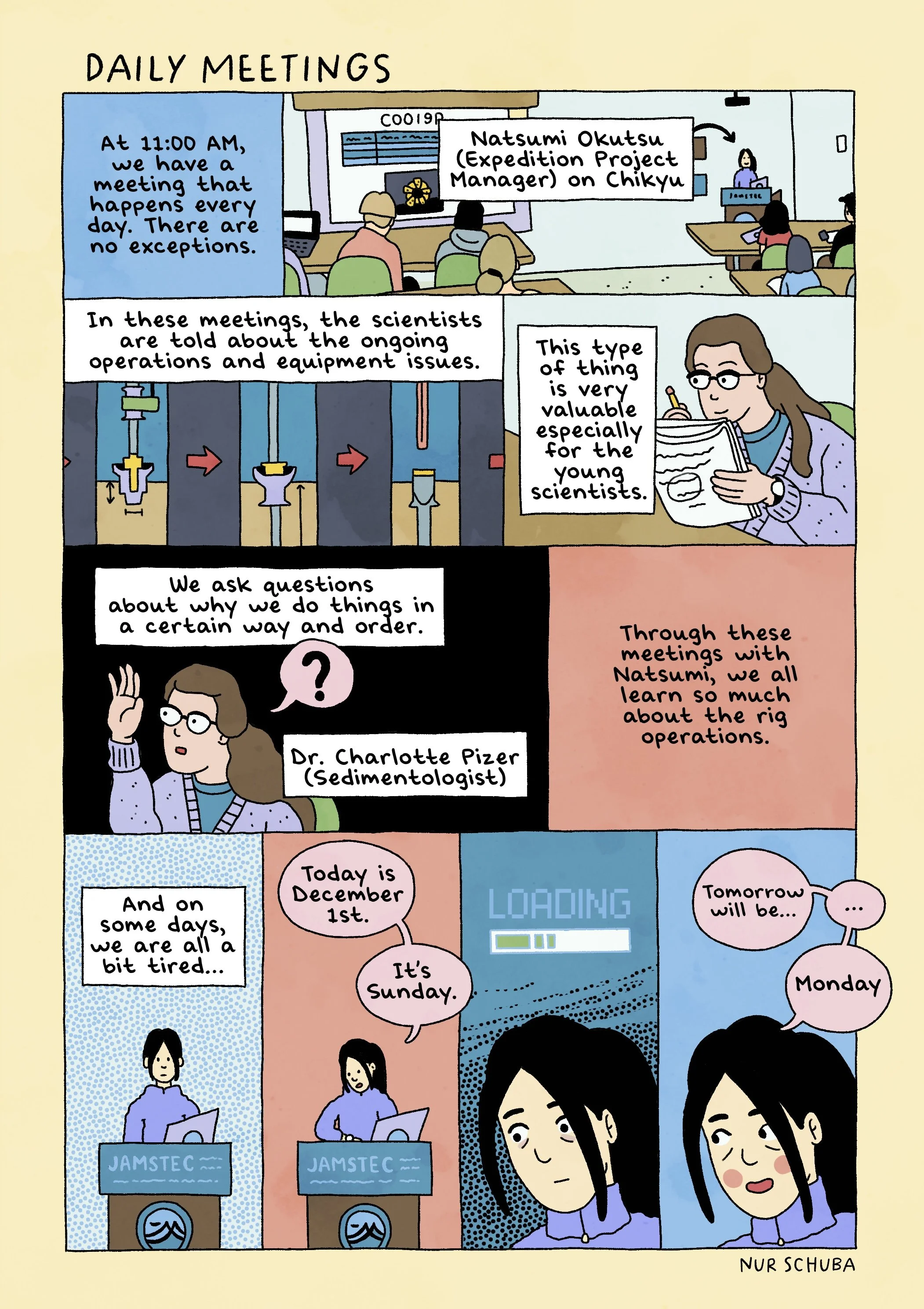 Created onboard the deep-sea drilling vessel Chikyu during International Ocean Discovery Program (IODP) Expedition 405, this bilingual comic series offers a behind-the-scenes look at life and science at the Japan Trench. As one of the expedition’s Science Outreach Officer, I documented real-time research, shipboard operations, and daily life through illustrated stories. Blending didactic insights with slice-of-life moments, the comics aim to make complex geoscience accessible and the scientists behind it relatable.